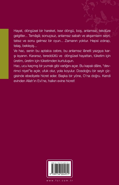 Hac: İstek, niyet ve yönelme, yani hareket ve aynı zamanda hareket yönüdür. Her şey, kendini kendinden, hayatından ve bütün bağlarından koparmakla başlıyor. Yoksa sen, kendi şehrinde sâkin değil misin? Sükûnet mi? Sükûn mu? Hac, sükunun gidişidir. Hayat, hedefi bizzat kendisi olan şey, yani ölüm. Bir tür soluk alıp veren, can taşıyan ölüm. Murdarca yaşamaksa, bir nevî kokuşmuş var oluş.