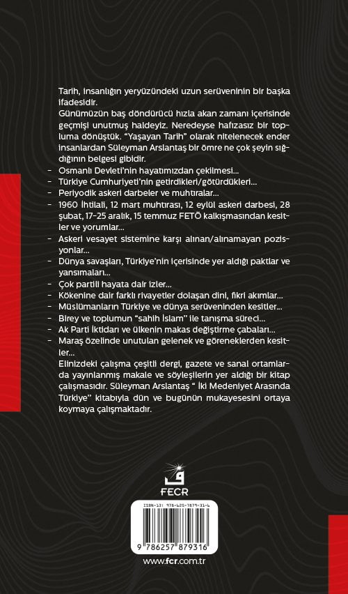 Günümüzün baş döndürücü hızla akan zamanı içerisinde geçmişi unutmuş haldeyiz. Neredeyse hafızasız bir topluma dönüştük. “Yaşayan Tarih” olarak nitelenecek ender insanlardan Süleyman Arslantaş bir ömre ne çok şeyin sığdığının belgesi gibidir.
