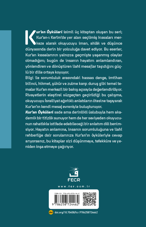 Kur’an Öyküleri 1, Kur’an-ı Kerîm’de yer alan kıssaları yalnızca tarihsel anlatılar olarak değil; ahlâkî, toplumsal ve eğitsel yönleriyle ele alan bütüncül bir çalışmadır. Eserin temel amacı, Kur’an kıssalarının insanı doğru düşünmeye, sahih inanca yönlendiren ilahî mesajlar taşıdığını ortaya koymak ve bu anlatıların çağlar üstü yönünü vurgulamaktır. Kitap, özellikle İsrailoğulları kıssalarını merkeze alarak, geçmiş ümmetlerin yaşantıları üzerinden günümüz insanına hitap eden evrensel dersleri analiz etmektedir. Yazar, Kur’an kıssalarının mitolojik veya edebî bir kurgu olmadığını; bilakis hakikate dayalı, tarihsel gerçekliği bulunan ilahî anlatımlar olduğunu savunur. Bu bağlamda kıssalar, olayların kronolojik aktarımından ziyade mesaj merkezli bir yöntemle ele alınmaktadır. Kur’an’ın kıssaları farklı surelerde parça parça sunmasının hikmeti, okuyucuyu sürekli tefekküre sevk etmek ve mesajın zihinde derinleşmesini sağlamaktır. Eserde, Hz. Musa, Firavun, Karun, Talut ve Calut gibi örnek şahsiyetler üzerinden iman–inkâr, adalet–zulüm, sabır–isyan gibi temel karşıtlıklar incelenir. Ayrıca Ashab-ı Kehf ve Hz. Yusuf kıssaları bağlamında insanın ahlâkî direnci, ilahî yardım ve kader bilinci ele alınır. Bu yönüyle kitap, Kur’an kıssalarını pedagojik bir yöntemle değerlendirerek bireysel ve toplumsal dönüşümün imkânlarını tartışır. Sonuç olarak Kur’an Öyküleri 1, Kur’an kıssalarını modern okuyucu için anlaşılır kılmayı hedefleyen, tefsir, ahlâk ve eğitim disiplinleriyle ilişkili özgün bir çalışmadır. Eser, Kur’an anlatılarının sadece geçmişi değil, bugünü ve geleceği de inşa eden ilahî rehberlik sunduğunu göstermektedir.