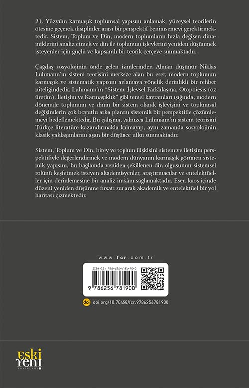 Sociological theory is a crucial scientific necessity for the disciplines of sociology and the sociology of religion. In this context, various theories have been developed in both classical and contemporary sociology to explain society and religion. Among the most prominent sociologists of recent times, Niklas Luhmann stands out for developing one of the most comprehensive and systematic theories in sociology through his general systems theory. Drawing on multiple disciplines, Luhmann constructed a radical “super theory” that challenges traditional sociological approaches, aiming to explain society and social phenomena. Luhmann conceptualized the global society as a system and sought to analyze all social phenomena associated with this world society. He produced a universal theory applicable to all societies by developing conceptual abstractions and cognitive frameworks. According to Luhmann, modern society possesses a highly complex structure, and this hyper-complex society can only be explained through an equally complex theory. In this framework, modern society consists of functional subsystems forming the social system branches. Luhmann analyzed various social phenomena—such as education, economy, science, art, health, and law—within the context of these functional subsystems. Religion, by specializing in a specific function and gaining autonomy, has found its place in modern society. Luhmann examined the phenomenon of religion within the framework of systems theory and evaluated it from a systemic perspective. However, it can be argued that Luhmann has not yet received the recognition he deserves in academic circles. While the significance of his general systems theory has been acknowledged in some countries and various studies have been conducted for this purpose, the existing body of work is still not considered satisfactory. Similarly, the general systems theory remains relatively unknown in Turkey, which is seen as a shortcoming for Turkish sociology and the sociology of religion. This study aims to contribute to addressing this gap in Turkish sociology and sociology of religion literature.